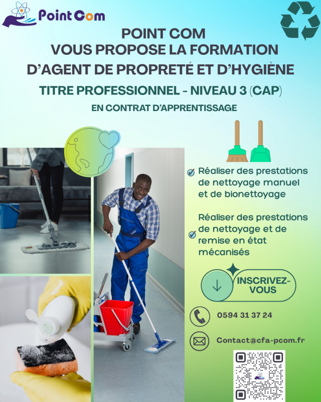 L'agent de propreté et d'hygiène assure des prestations de nettoyage manuel et mécanisé afin de garantir la propreté et l'hygiène d'équipements, de surfaces et de locaux.